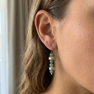 מתוך ההשראה הזו נוצרו עגילי הכסף עם הדיסקיות. הדיסקיות מונחות זו מעל זו כמו ערימה קטנה של חלוקי נחל. כל דיסקית מיוצרת בעבודת יד ולכן היא שונה מעט בגודל ובצורה – כמו אבנים שנאספו מהחוף.